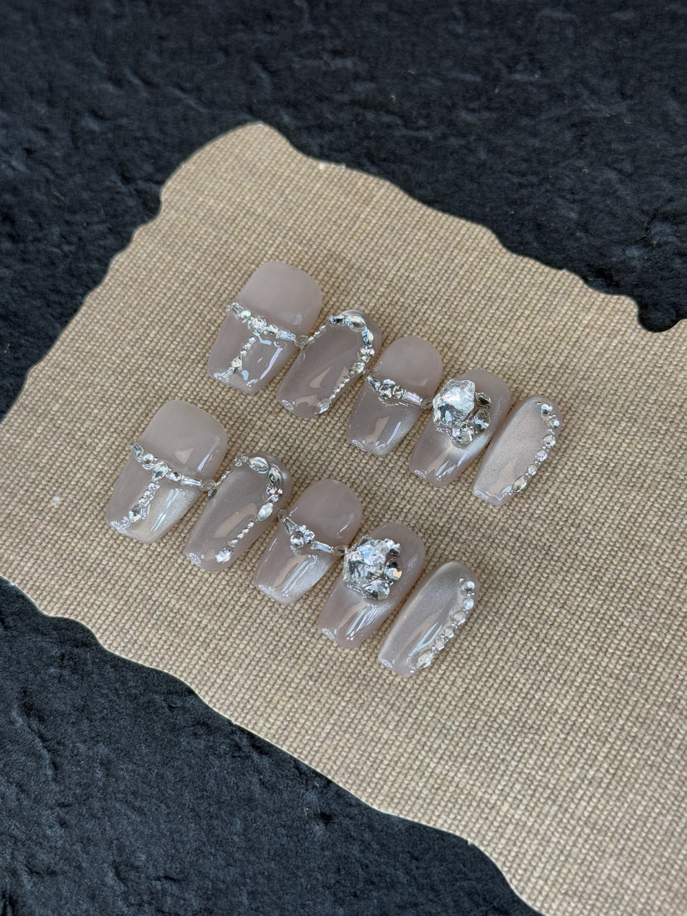 手作りネイルチップを貼るだけ簡単サロンのジェルネイルと同様の厚みで、専用ジェルを使って手作りアートで仕上がりました。 ネイルチップは何度でも使用可能です。