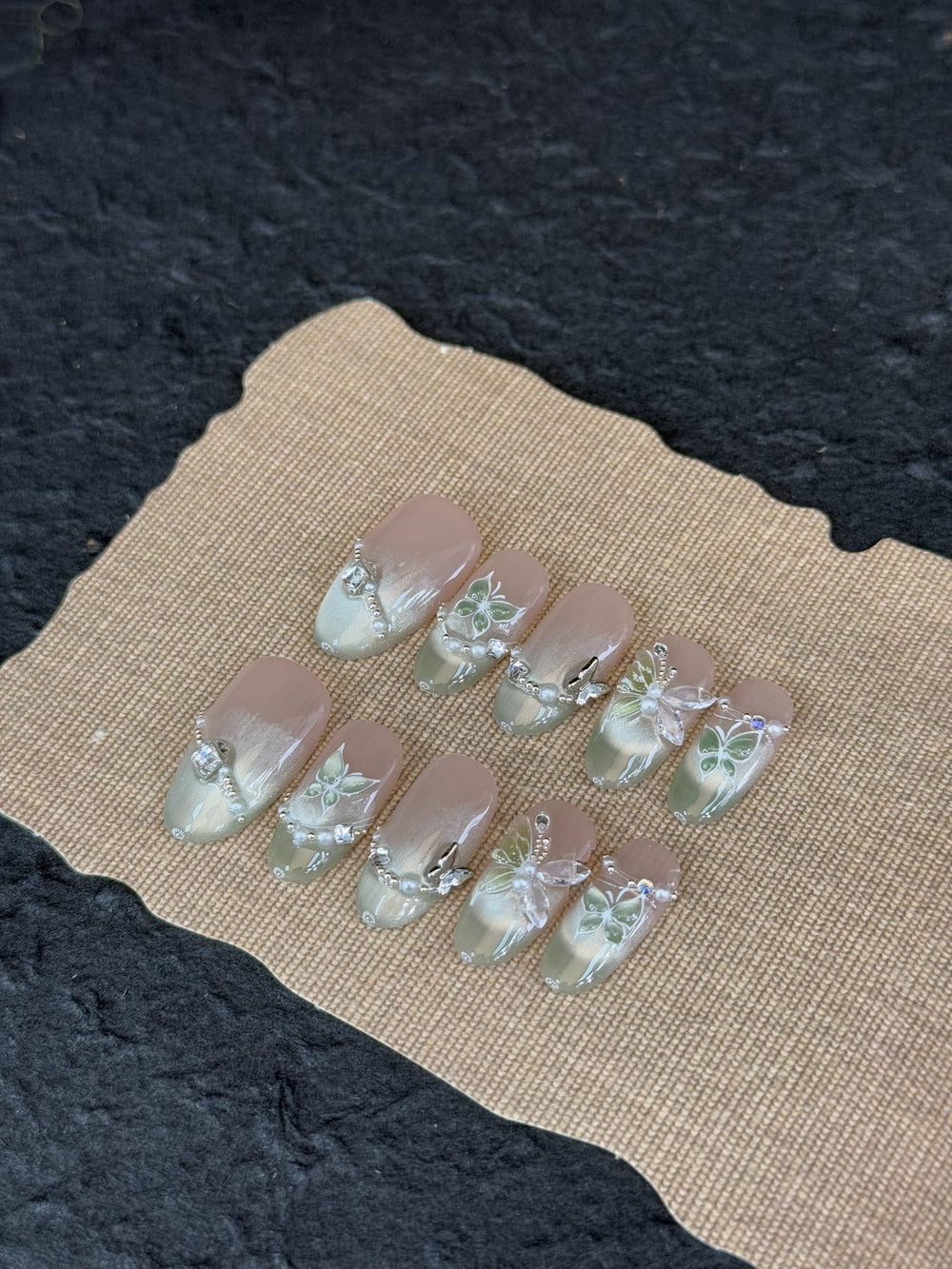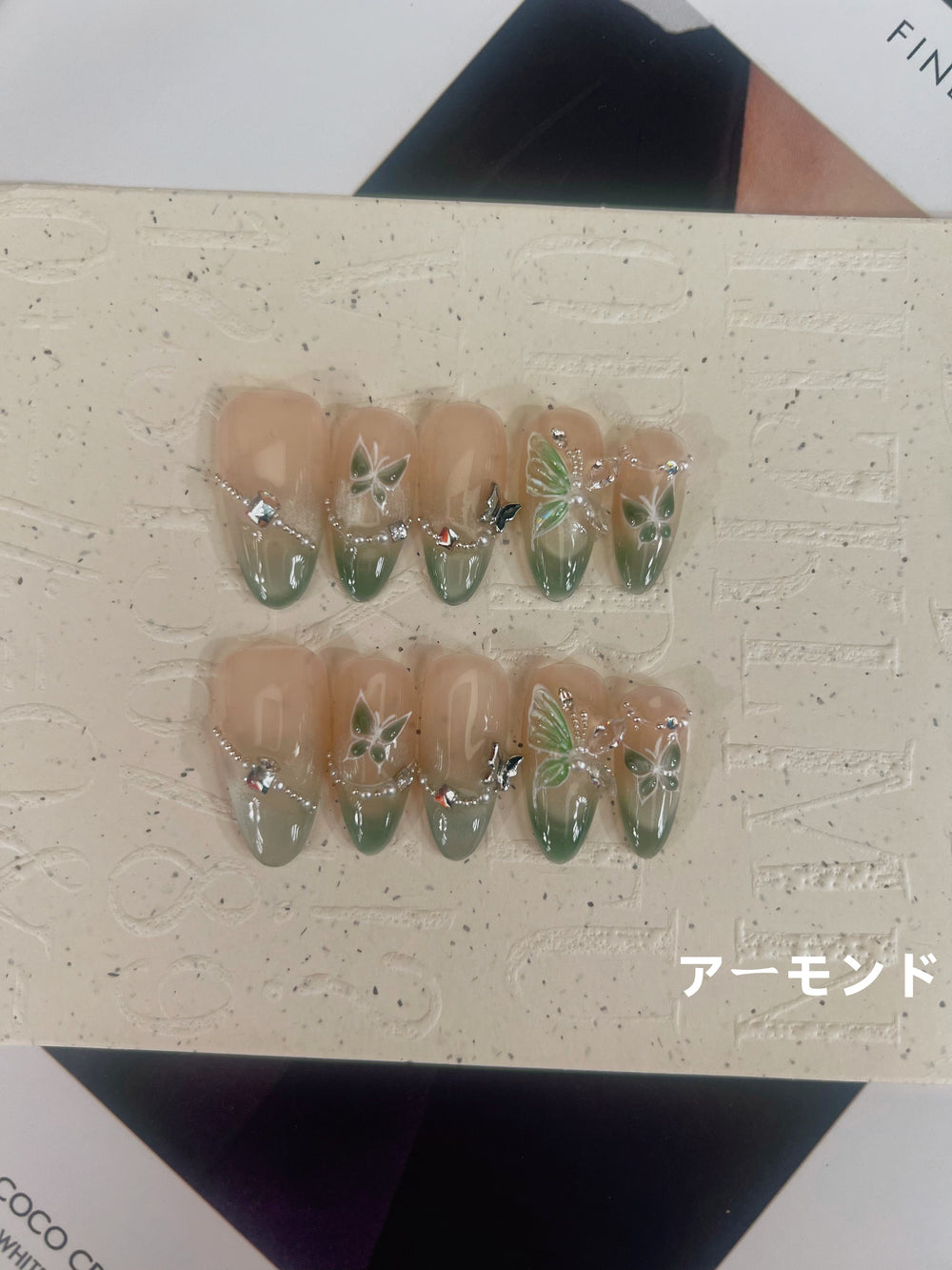 貼るだけ簡単サロンのジェルネイルと同様のボリュームで、専用ジェルを使って手作りアートに仕上がりました。 ネイルチップは何度でも使用可能です。
