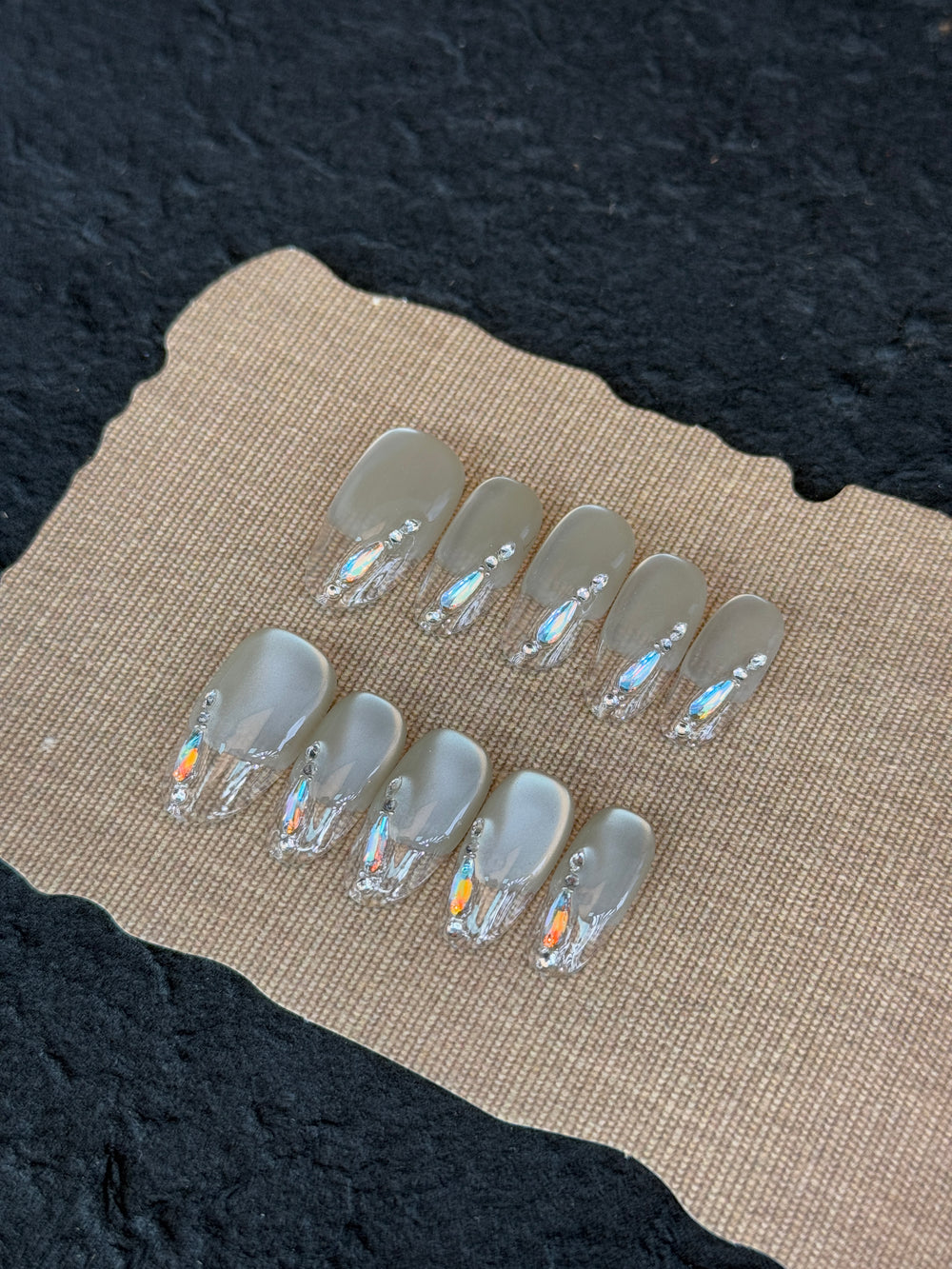 貼るだけ簡単サロンのジェルネイルと同様のボリュームで、専用ジェルを使って手作りアートに仕上がりました。 ネイルチップは何度でも使用可能です。