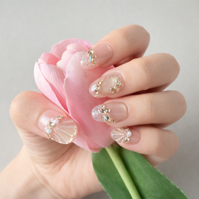 手作りネイルチップ10枚に加え、通常タイプのネイルチップ1セットをおまけとして同梱しております。